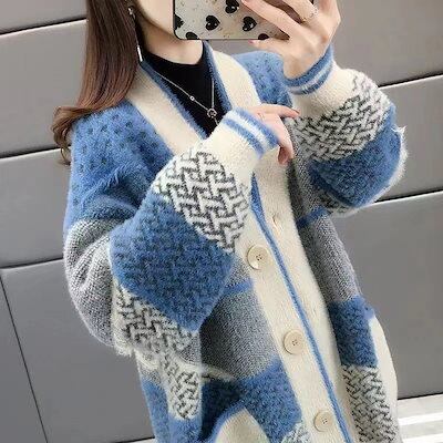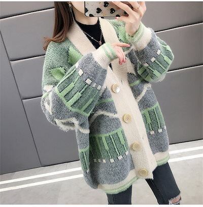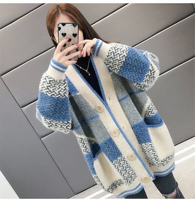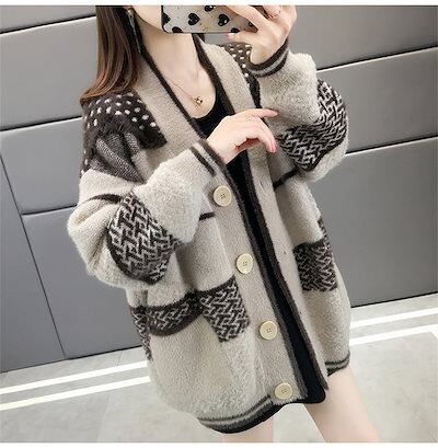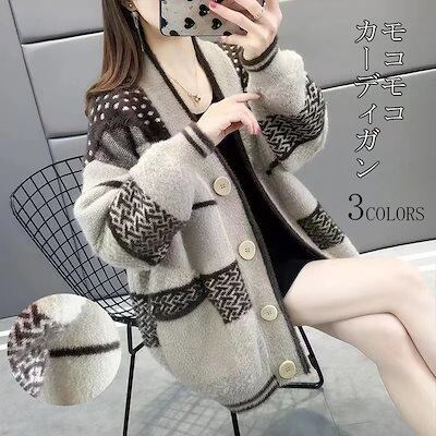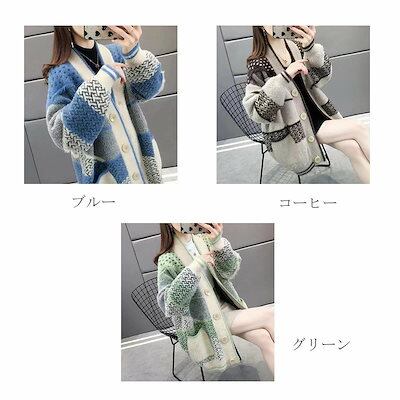 切替 柔らかい ニット 羽織り 防寒 ニットカーディガン セーター 上着 ノーカラー 秋冬 通学 ロングコート モコモコ ボタン留め シンプル レディース 可愛い 防寒 コーディガン ロング丈 アウタ | DOKO-ME
