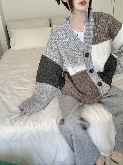ロング丈 アウター 防寒 ニットセーター フリンジ 羽織り 前開き 羽織 秋 チェック柄 セーター レディース 上着 ニット コーディガン ニットコート カーディガン 秋冬 ノーカラー セーター ジャ | DOKO-ME
