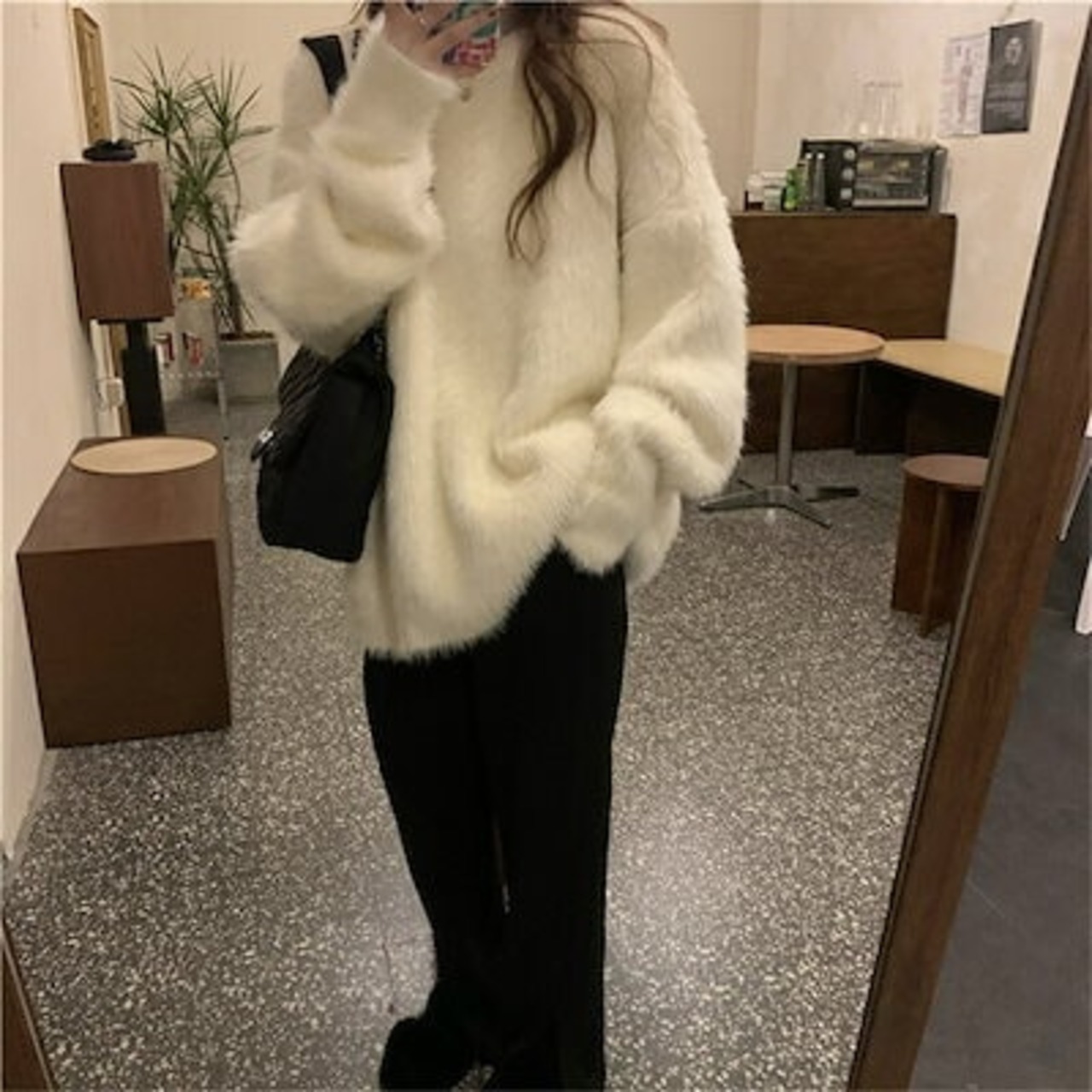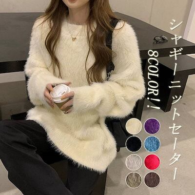 ロング丈 ニット 秋冬 シャギーニット 大きいサイズ 暖かい シャギー 柔らかい セーター ふんわり 冬物 クルーネック プルオーバー シャギーセーター ニットソー 無地 トップス 長袖 秋 レディー | DOKO-ME