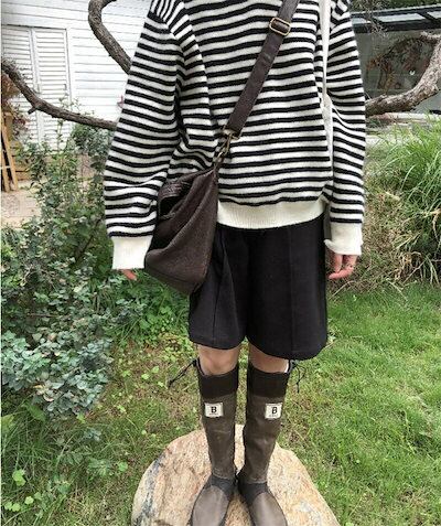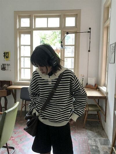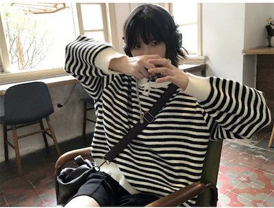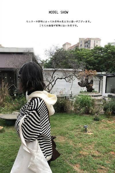 長袖トップス セーター トップス ドロップショルダー ニットセーター レディース ゆったり 厚手 通勤 ニットウェア ニットトップス カットソー パーカー 通学 フード付き プルオーバー 冬 ボーダー | DOKO-ME