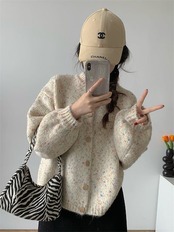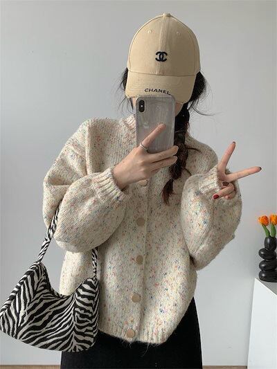 ボタン止め 厚手 コート 冬物 高級感 春秋 可愛い レディース 長袖 秋 秋冬 ショート丈 ライトアウター ゆったり 上品 ジャケット 学院 ニット 織物 ニットセーター ラウンドネック 柔らかい | DOKO-ME