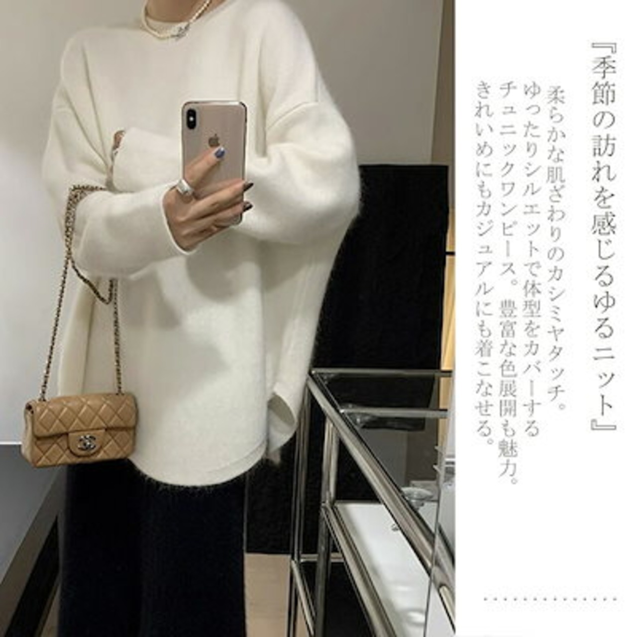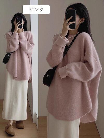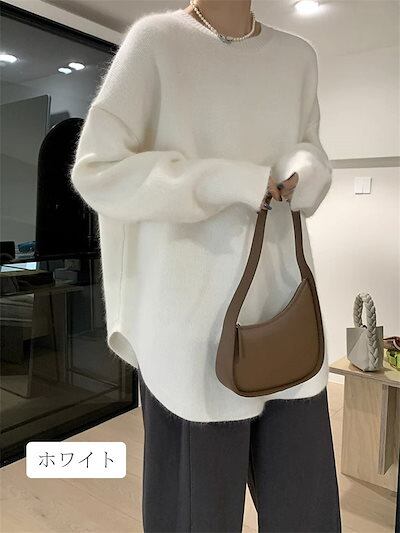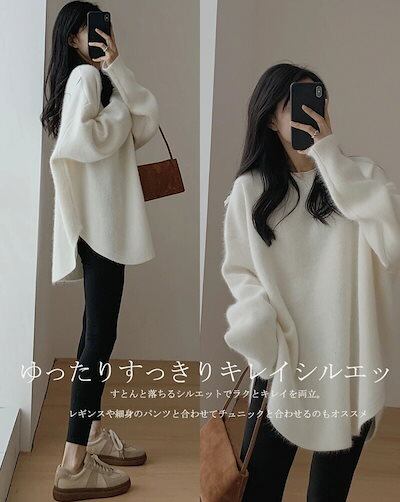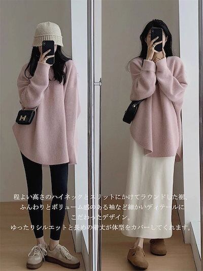 カットソー チュニック丈 レディース ドルマン袖 セーター ニットセーター 体型カバー ニット 秋冬 長袖 可愛い スリット 冬物 ロングニット 暖かい オーバーサイズ 着痩せ ニットチュニック もこ | DOKO-ME