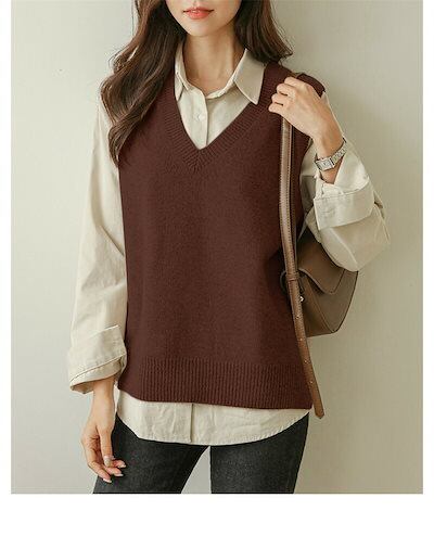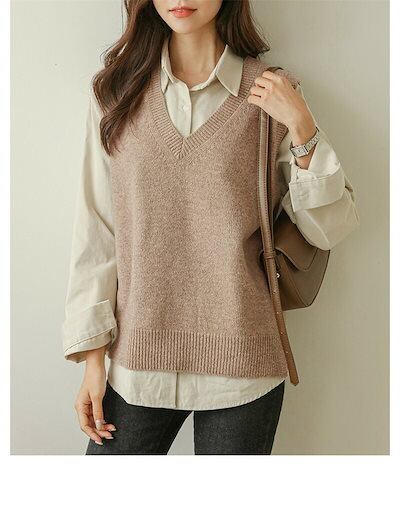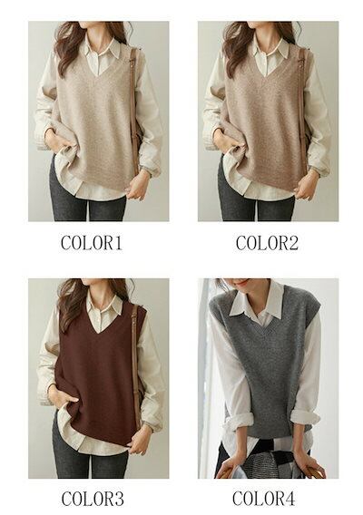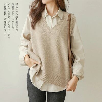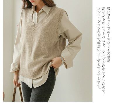 20代 無地 リブニット 可愛い 柔らかい チョッキ セーター レディース 冬 秋 シンプル ニットセーター お洒落 30代 vネック 通学 トップス ニット ベスト ニットベスト プルオーバー ニッ | DOKO-ME