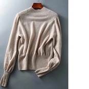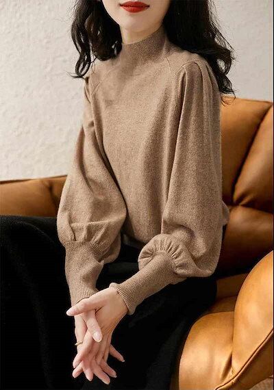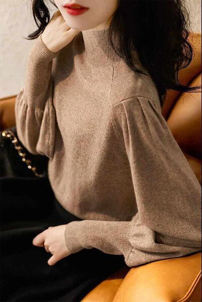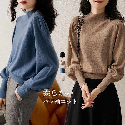 リブニット カジュアル セーター 体型カバー 無地 パフ袖 ボトルネック セーター レディース ニットソー トップス 大きいサイズ 洗える ニット 秋 長袖ニット 薄手 セーター 秋冬 長袖 もっちり | DOKO-ME