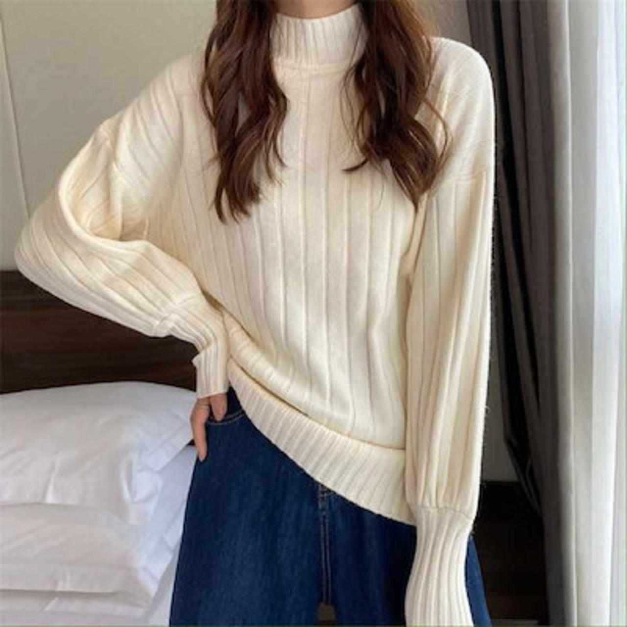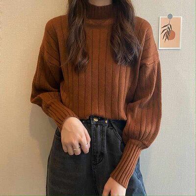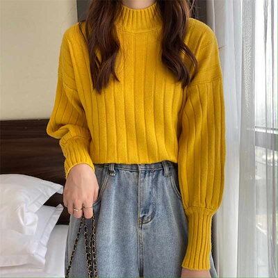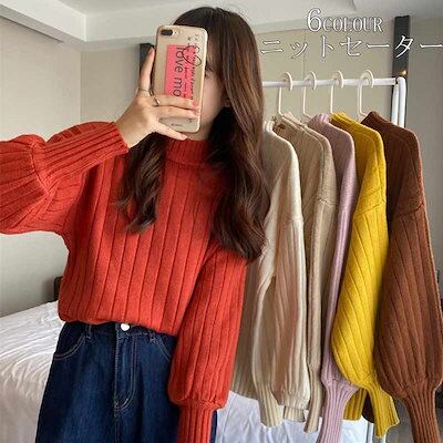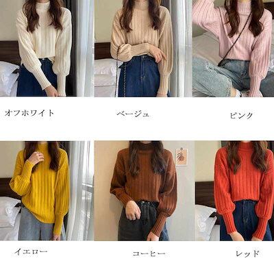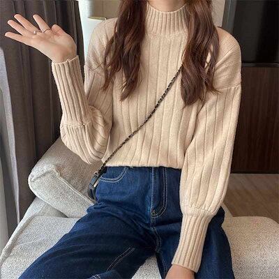 プチハイネック レディース 冬 ニットセーター プルオーバー 無地 カットソー 長袖 トップス 大きいサイズ ニットトップス セーター 柔らかい セーター タートル ハイネック インナー パフスリーブ | DOKO-ME
