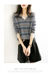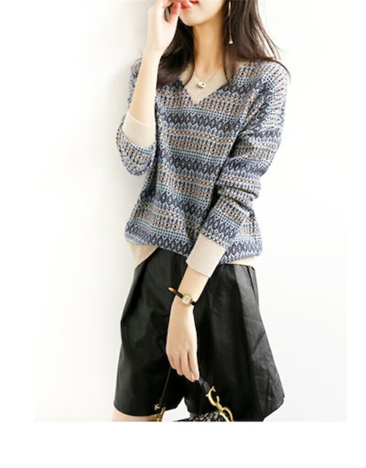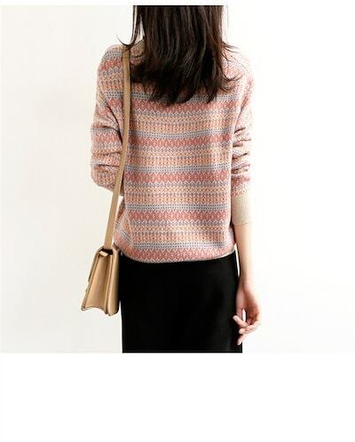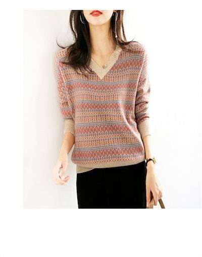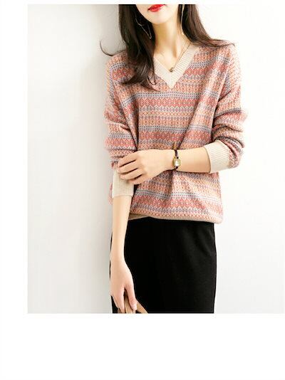 ベーシック プルオーバー vネック 花柄 ゆったり カジュアル 重ね着 秋冬 上品 トップス 長袖 ニット 20代 シンプル レディース インナー 30代 柔らかい セーター ピンク ニットセーター | DOKO-ME