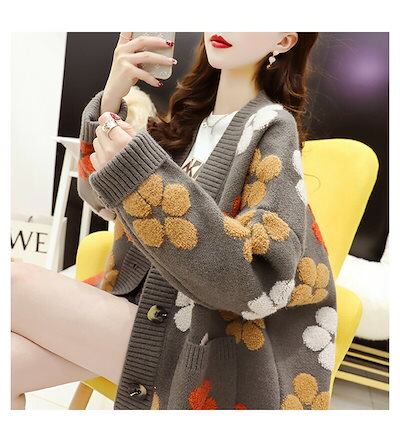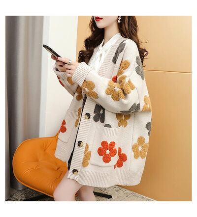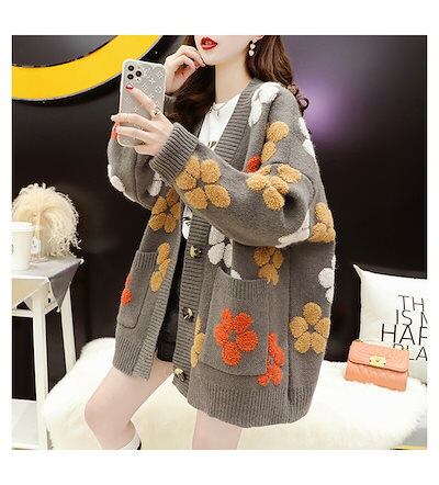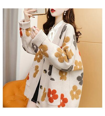 アウター 大きいサイズ ショート丈 冬 カーディガン 可愛い ニットコーディガン お出かけ ニットソー ニット 秋 ニットセーター 花柄 ライトアウター ニットカーディガン レディース 防寒 長袖 羽 | DOKO-ME