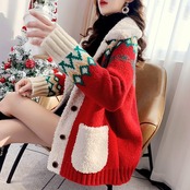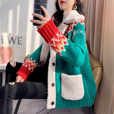 レディース ゆったり 前開け 赤 カーディガン お洒落 ルームウェア ゆったり 秋 ニットカーディガン 羽織り 切り替え 緑 赤セーター 柄 冬 コーディガン アウター トップス ショート丈 ニット | DOKO-ME