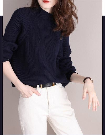 ゆったり ニットソー ニットセーター プルオーバー ニットウェア ハイネックニット レディース タートルネック お洒落 チュニック 秋冬 無地 ブラウス 体型カバー 柔らかい アウター セーター カッ | DOKO-ME