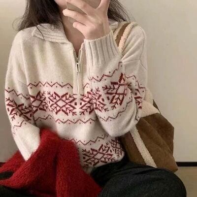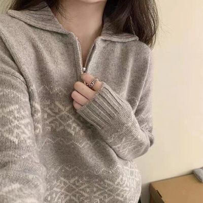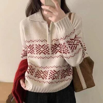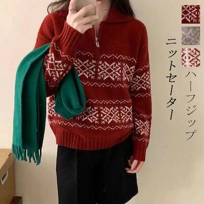 ゆるめ 落ち感 秋 レディース 通勤 長袖 秋冬 セーラーカラー ニットパーカー 通学 リブニット ボリューム ニットセーター ハーフジップ ニット クリスマス フレンチスリーブ オシャレ 春 ビッグ | DOKO-ME