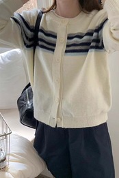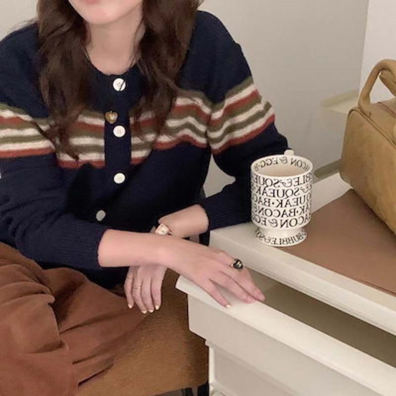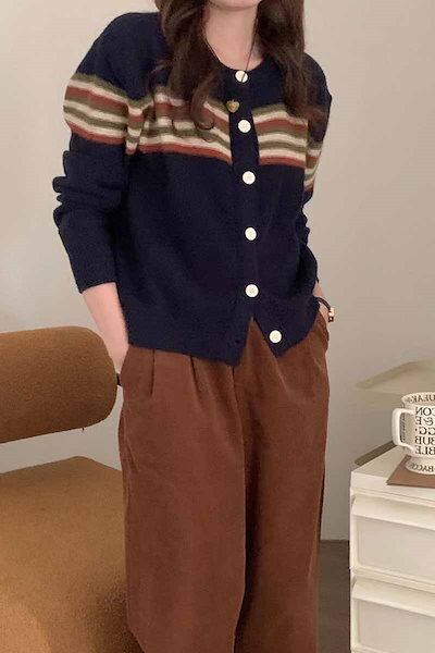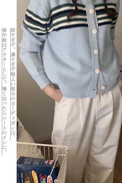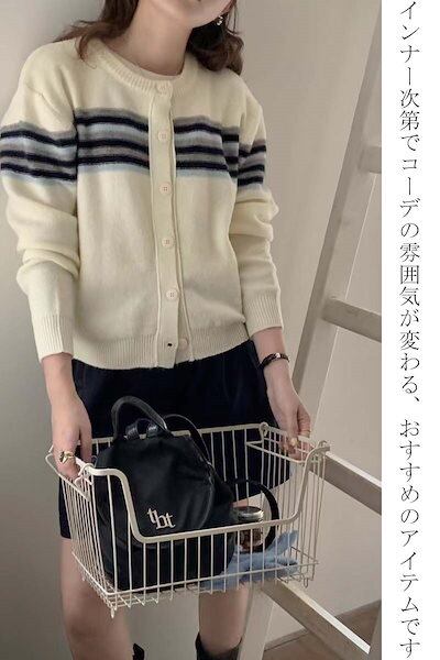 カーディガン クルーネック ニットカーディガン 秋 秋冬 柔らかい ニットコート レディース ボーダー ニットセーター ライトアウター ニット 可愛い 長袖 体型カバー アウター コーディガン 大きい | DOKO-ME