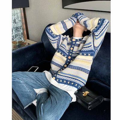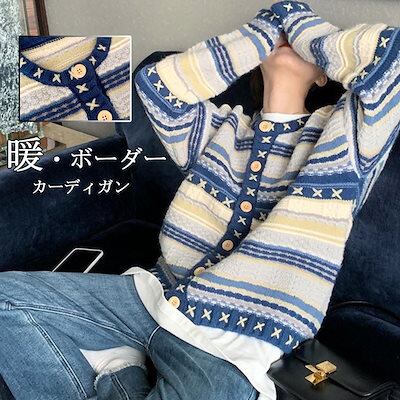 秋 セーター 大きいサイズ ニット 羽織り ニットセーター クルーネック カーディガン 秋冬 ゆったり ライトアウター ボーダー ノーカラー レディース 柔らかい 体型カバー 可愛い ニットコート ト | DOKO-ME