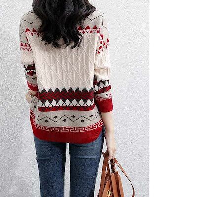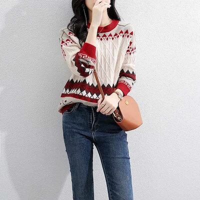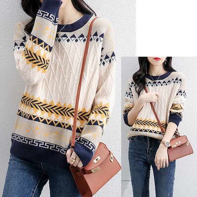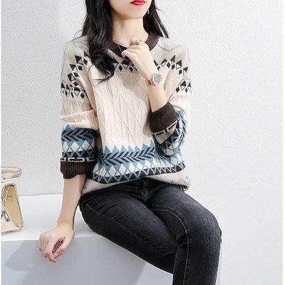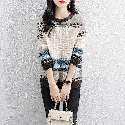 もこもこ 秋冬 レディース きれいめ カジュアル 冬 トップス おしゃれ 通勤 セーター クルーネック コーデ プルオーバー 柔らかい 長袖 ブラウス シンプル リブ編み ニットトップス ゆったり 柄 | DOKO-ME
