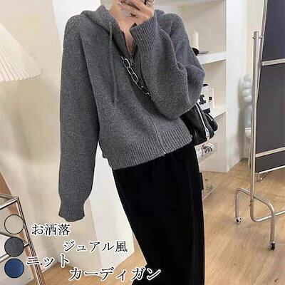 カーディガン 通勤 ニットコート ニット 秋 秋冬 お洒落 フード付き 前開き ニットアウター 無地 ニット トップス ライトアウター 通学 ニットセーター レディース ジャケット セーター 秋物 長 | DOKO-ME