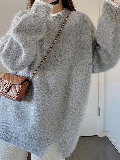 カットソー レディース ニットセーター セーター チュニック チュニック丈 体型カバー 無地 柔らかい もこもこ 可愛い オーバーサイズ 暖かい ニットチュニック 秋冬 切り替え ニット 冬物 プルオ | DOKO-ME