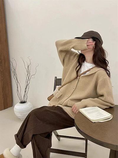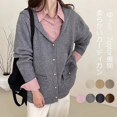 長袖 無地 春服 レディース ゆったり アウター 秋冬 ニットコート vネック カーディガン セーター ニットカーディガン 秋 秋服 ジャケット 長袖セーター コート 前開き ニットトップス ポケット | DOKO-ME