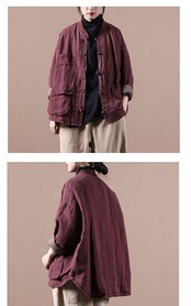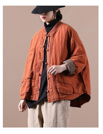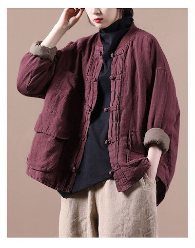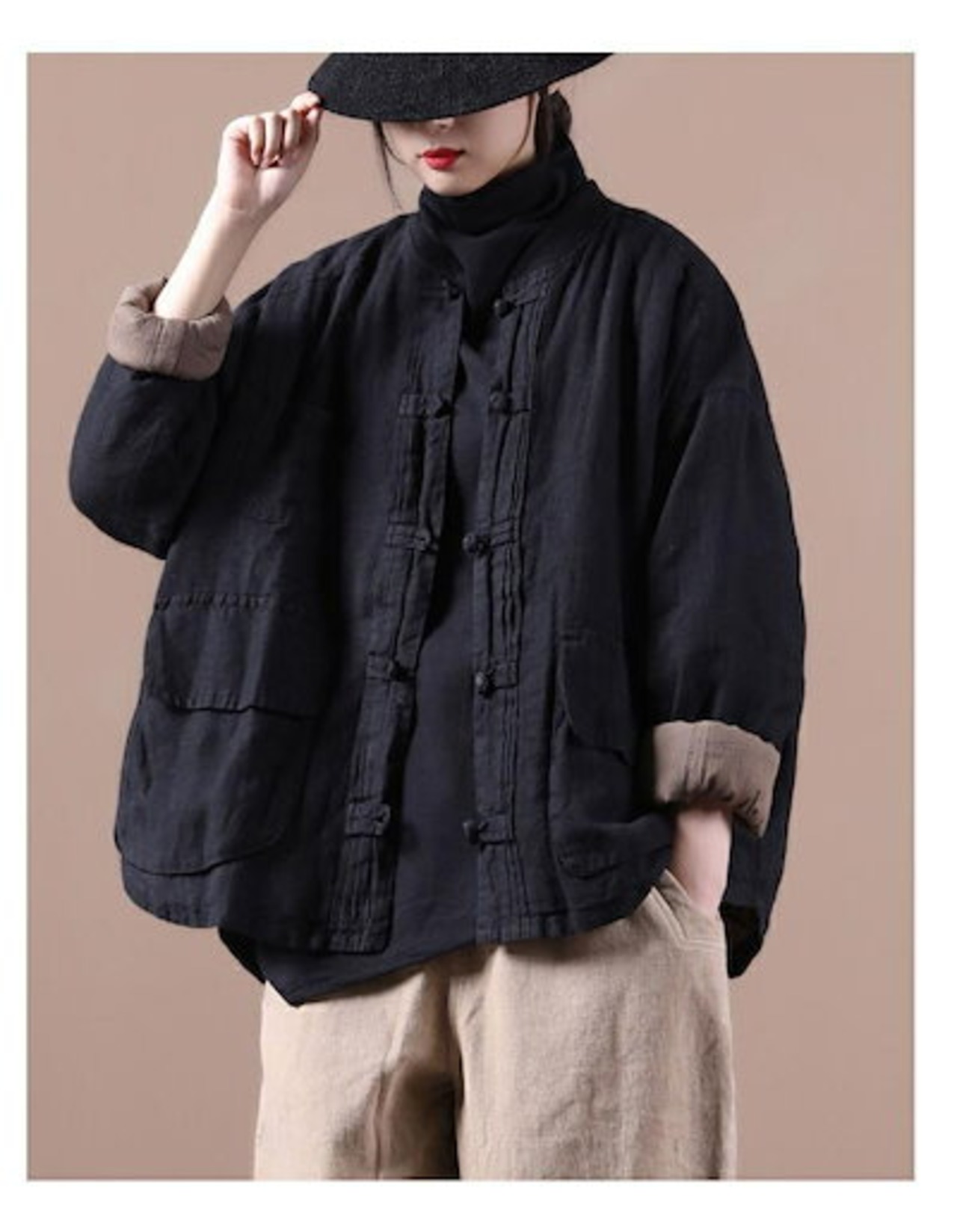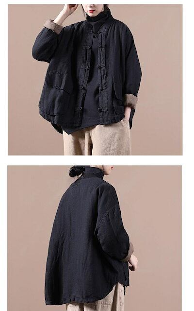 長袖 中綿ジャケット トップス アウター オーバーサイズ ショート丈 ブラック 厚手コート ゆったり 軽量 中綿コート 黒 綿入り チャイナボタン 秋冬ジャケット 50代 大きいサイズ 綿 レディース | DOKO-ME