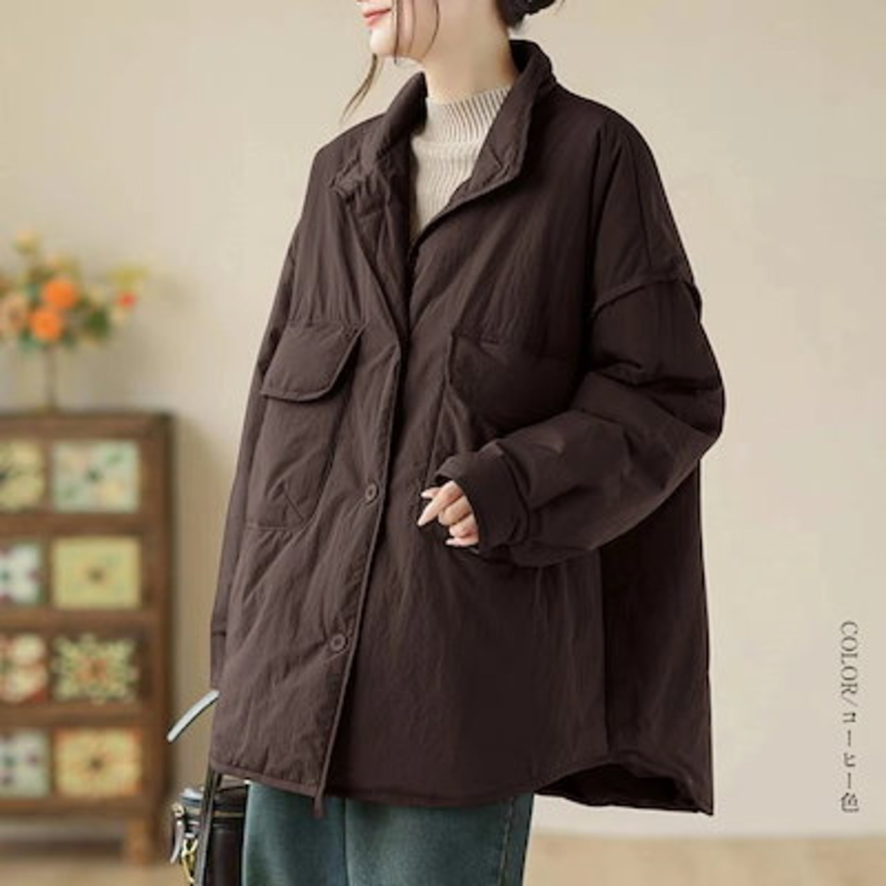 40代 50代 トップス レディース あったか ドロップショルダー 長袖 暖かい 60代 ダウン ブラック ボリュームスリーブ 黒 秋冬 中綿ダウンジャケット ジャケット ゆったり 体型カバー 防寒 | DOKO-ME