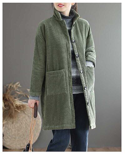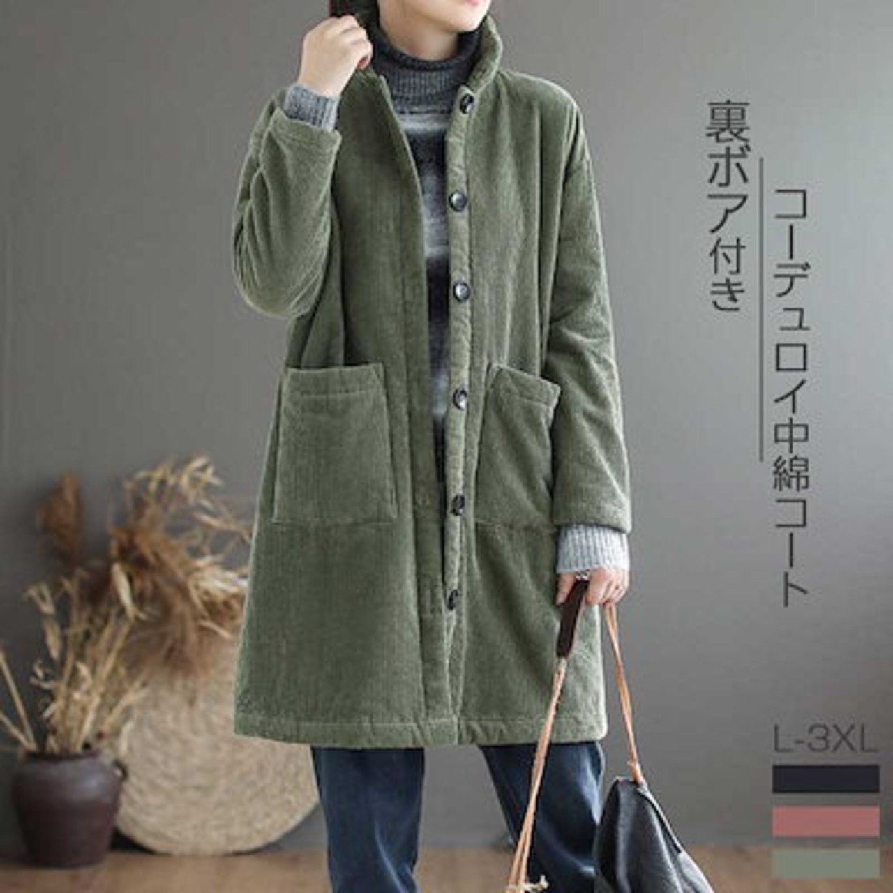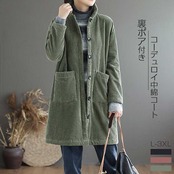 ボアコート ポケット付き コート 中綿コート カーディガン 秋冬 コーデュロイ 厚手 裏ボアコート 無地 コーデュロイコート 中綿 着痩せ ボア アウター ロング トップス 裏起毛 レディース 裏ボア | DOKO-ME