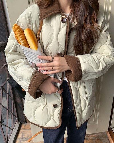 ショット防寒 キルティングコート コート アウター ベージュ 折り襟 ダウン 秋冬 ジャケット レディース 長袖 ポケット付き 中綿ダウン 中綿コート 長袖 ボタン 中綿ジャケット トップス ショット キルテ | DOKO-ME