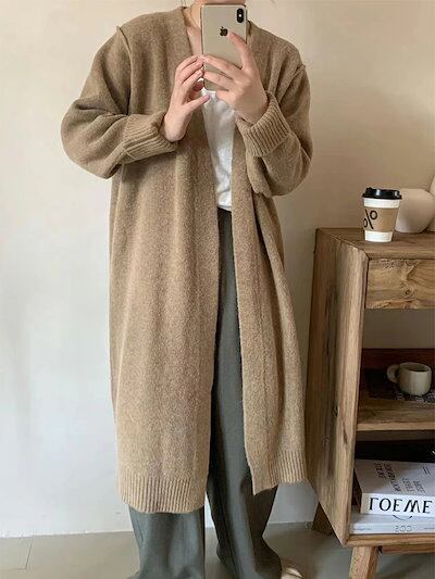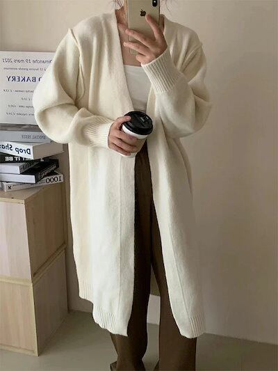 秋冬 上品 大きいサイズ オフィス 羽織り トッパーニットカーディガン ニット セーター ロングカーディガン おしゃれ 防寒 マキシ丈 きれいめ ロングコート カーディガン 通勤 レディース ゆったり | DOKO-ME