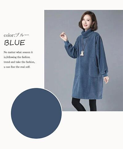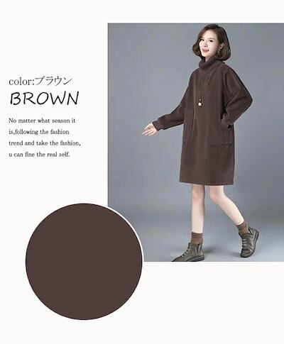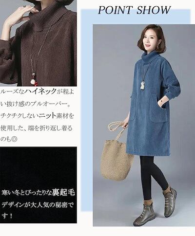 裏起毛 ワンピース レディース 秋 チュニックワンピース 50代 秋冬 トップス チュニック ハイネック 長袖 コーデュロイワンピース タートルネック ひざ丈 暖かい カジュアル 無地 ハイネック 体 | DOKO-ME