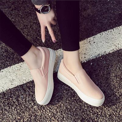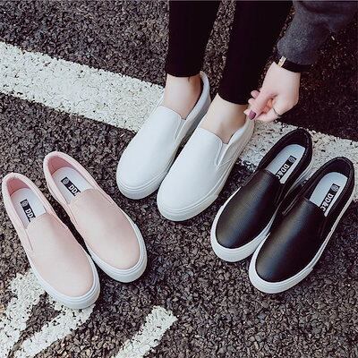 レディース スリッポン スニーカー カジュアルシューズ 白黒ピンク フラットヒール 学生 スクール お出掛け ウォーキング コンフォート 春夏 オシャレ 女子靴