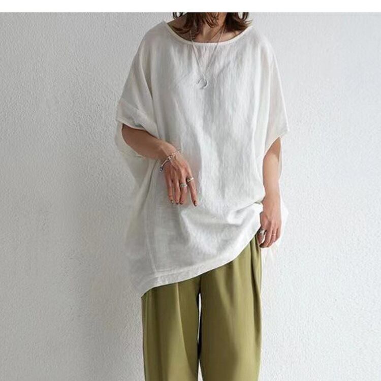 初回送料無料春夏新作オールマッチゆったりシャツラウンドネック半袖トップス人気商品