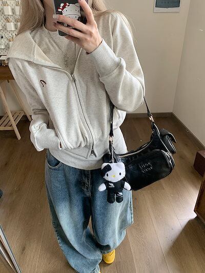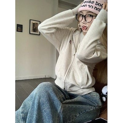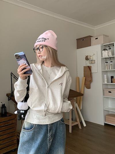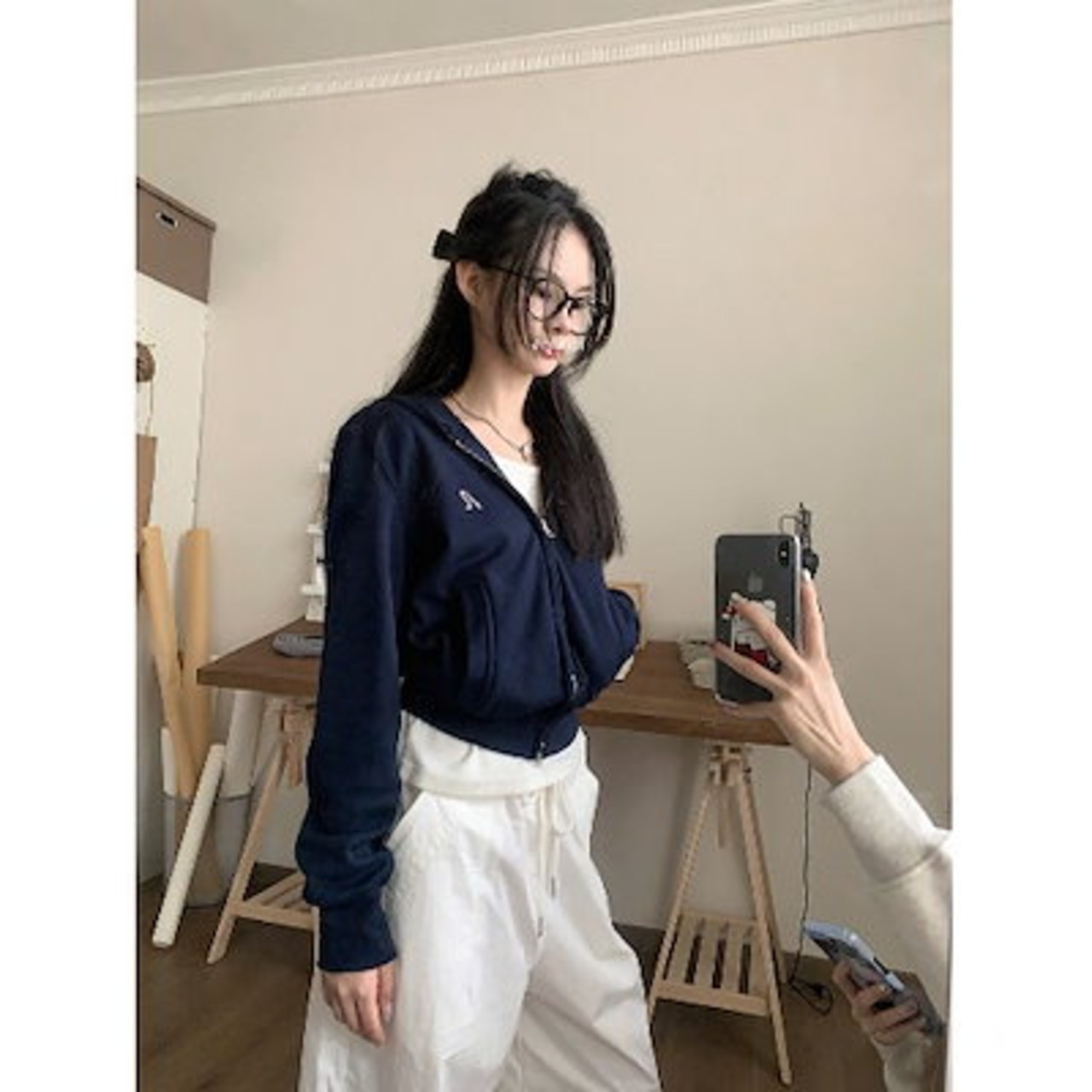 2024 秋冬トップスかわいいパーカー2type裹起毛フード付き韓国風長袖ゆったり細見え白黒おしゃれレトロ甘め大人っぽ韓国フルサイズファッション系ルーズレディースサイドお出かけ学生通学トラック羽織り | DOKO-ME