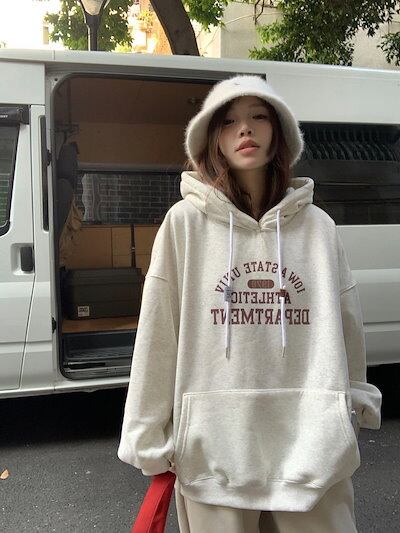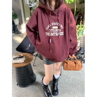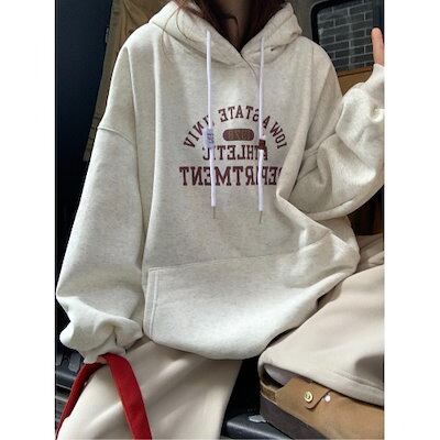 2024秋冬トップス 3色 厚手裹起毛 韓国風 長袖レトロパーカーカジュアルルーズファッション系ゆったり大人っぽかわいいレディースフード付き羽織りサイズきれいめシルエットトレーナー 大学生通学高校 | DOKO-ME