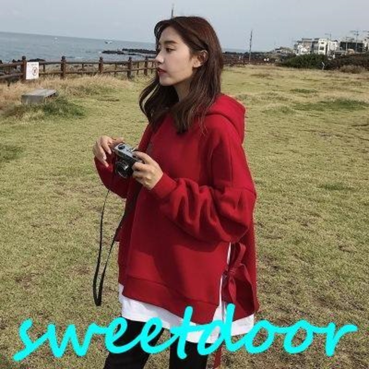 パーカー 秋冬 ゆったり 大きめ 秋 レディース トップス 体型カバー 裏起毛 フーディー おしゃれ フード付き 赤