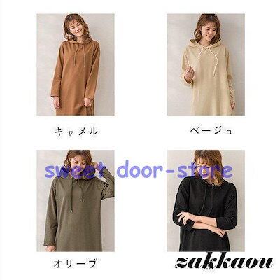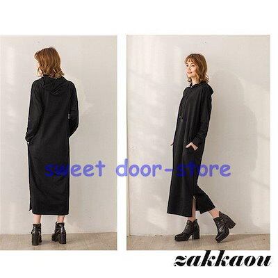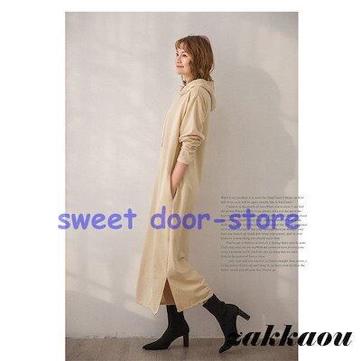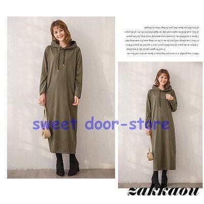 パーカーロングワンピース カットソーワンピース フード付き 長袖 ルームウェア レディース ロング丈 スウェット 秋 冬 着痩せ カジュアル シンプル ゆったり