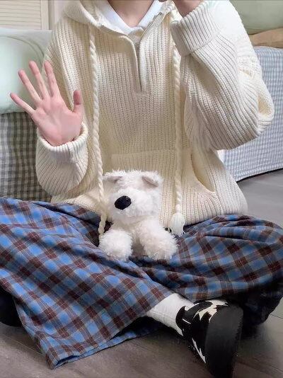2024 秋冬 韓国 かわいい レディース フード付きアウターフーディー 白 ブルゾン長袖シルエット加工 ユニセックス トップスカジュアルファッション系サイズお出かけフル丈トラック高校生通学学生 | DOKO-ME