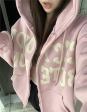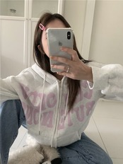 今年 秋冬 韓国裹起毛 防寒かわいい レディース フード付きアウターフーディーロゴブルゾン長袖シルエットトップス冬カジュアルファッション系サイズお出かけフル丈高校生 通学大学生トラック | DOKO-ME