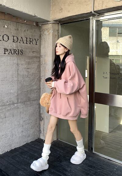 2024秋冬 選べる2タイプ 厚手 裹起毛 パーカー フード付き羽織りスタイルアップ女っぽ きれいめ 大人っぽ 上品 サイズゆったりカジュアルストリートシルエットスリーブ通学学生ファッション系春 | DOKO-ME