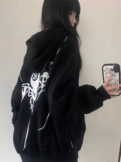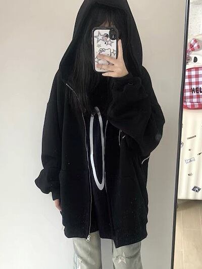 韓国【人気商品】 パーカー デザインニッチクモフード付きトレーナー 春秋冬潮重いカーディガンジップジャケット中綿入り厚手