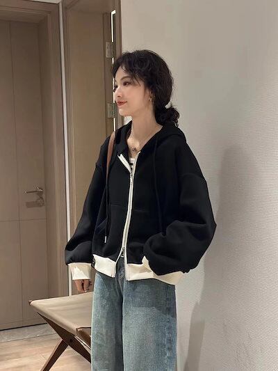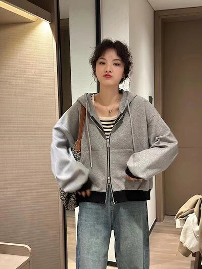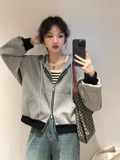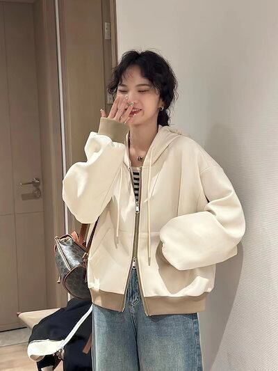 大人気 2024韓国ファッション秋新作 フード付き パーカー アウターコートジャケット トップス ロングカーディガン 秋アウター パーカー 秋ジャケット トレンチコートアウターレディース | DOKO-ME
