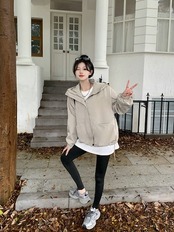2024春夏 BF風 スタイルアップ シルエット アウター カジュアル フード付きファッションパーカー サイズ 大人 ゆったりライクストリートフルトラックカジュアルフーディー秋かわいい | DOKO-ME