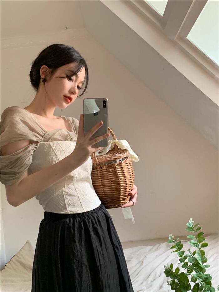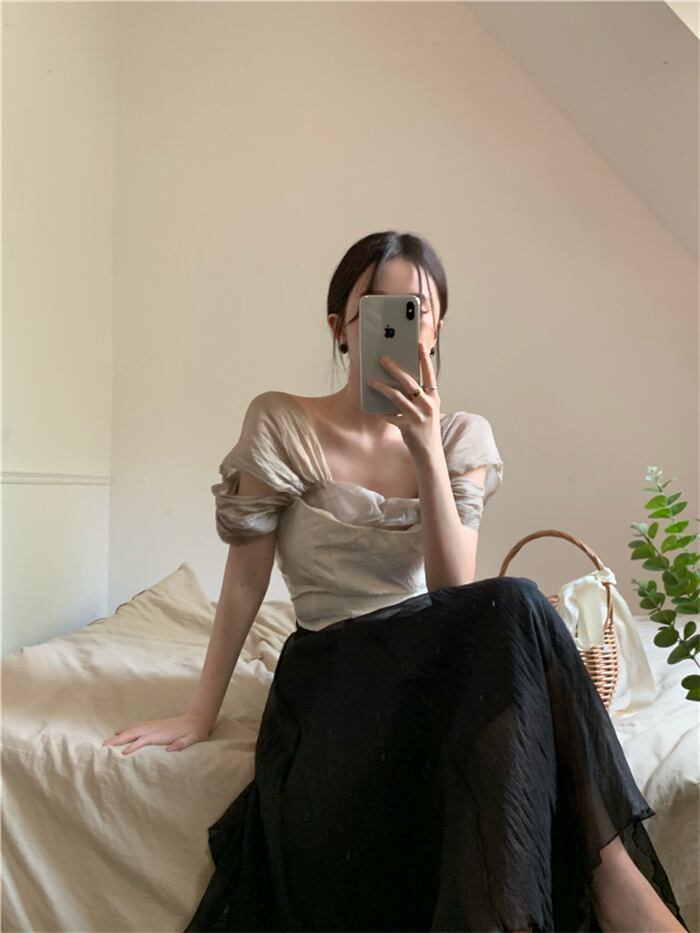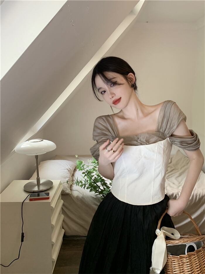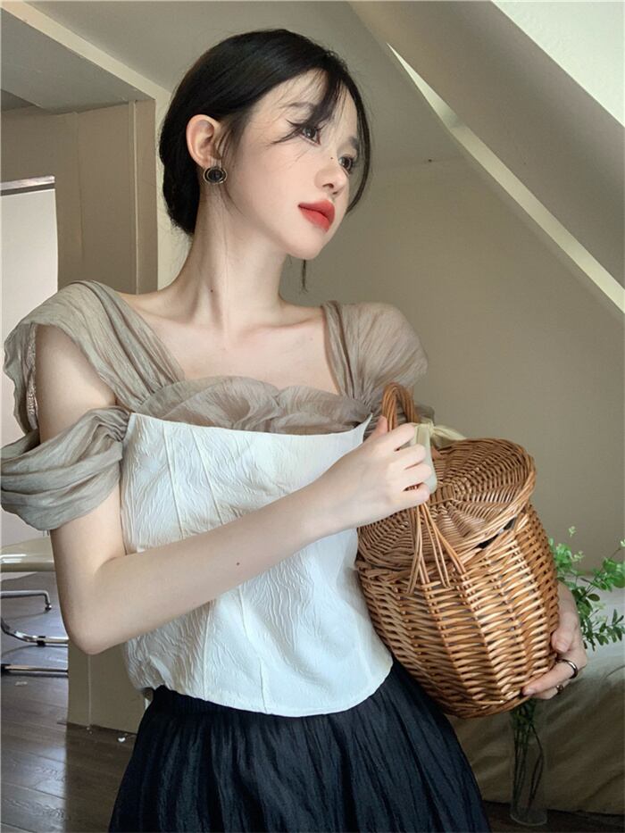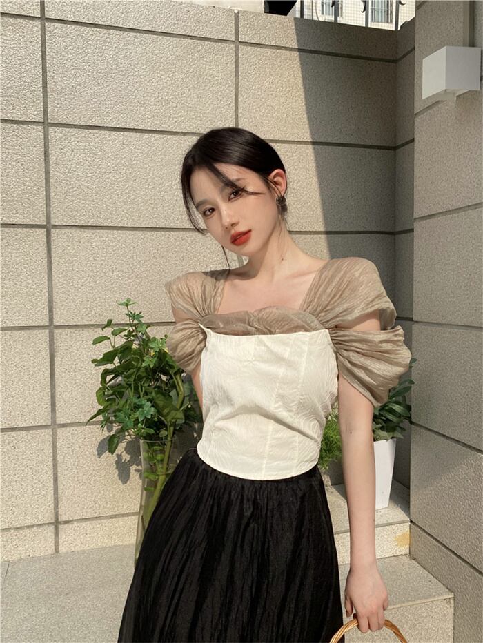 韓国大人気 レトロ/メッシュ/半袖/シャツ/女性/夏/デザインセンス/ウエスト/ショート気質/トップ