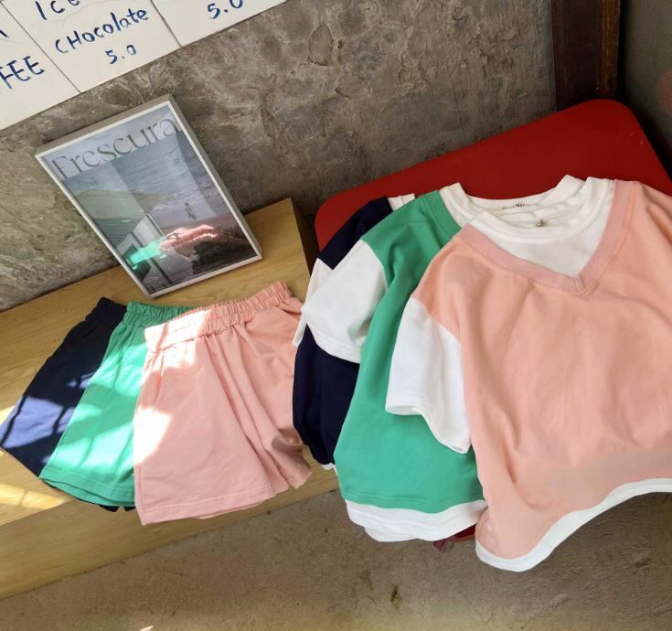 【2点セット】2022春夏新作 子供服 ベビー服 アパレル 半袖 tシャツ+ショットパンツ 女の子
