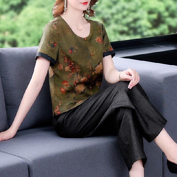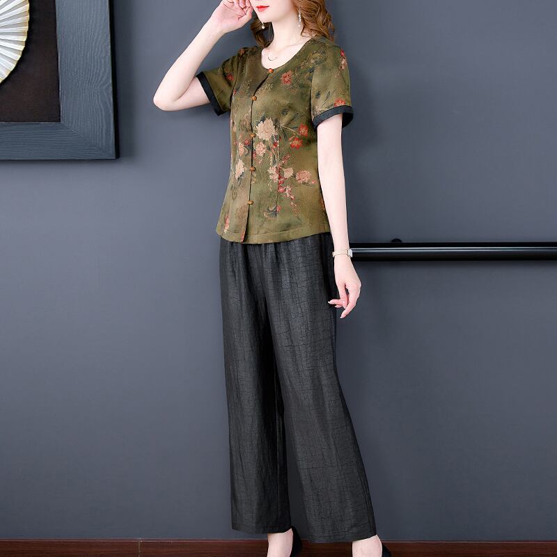 初回送料無料 ツーピース スーツ トップ 中年 トップス パンツ 人気商品 CL-8017