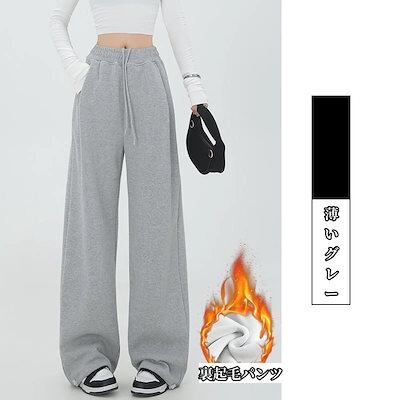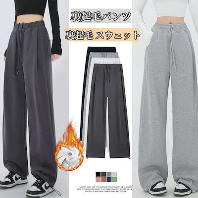 裏起毛パンツ韓国ファッション 秋冬 ワイドパンツ スラックスパンツ ワイドパンツ レディースゆったりスウェット パンツ スウェット防寒 裏起毛パンツ レディース パンツ レディース | DOKO-ME