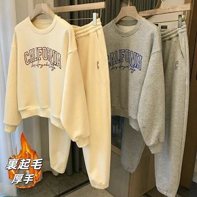 【2枚購入で 2oo円OFF!】2024新作 シンプル スウエット 裏起毛 セットアップ レディース レディースファッション 丸ネック Tシャツ トップス ワイドパンツ 二点セット 大きめサイズ | DOKO-ME