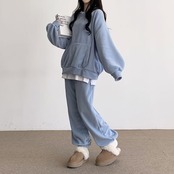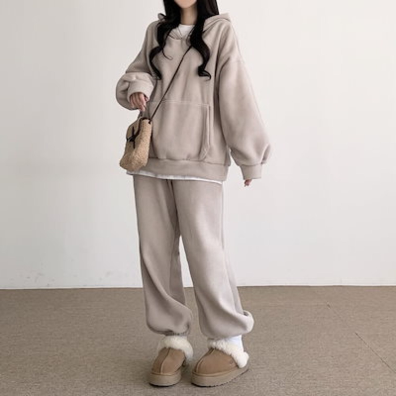 【2枚購入で 2oo円OFF!】2024新作 シンプル スウエット 裏起毛 厚手 セットアップ レディース レディースファッション パーカー トップス ワイドパンツ 二点セット 大きめサイズ | DOKO-ME