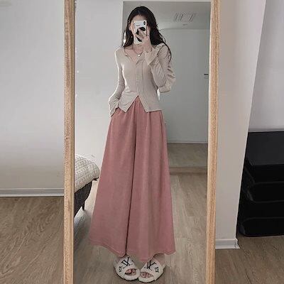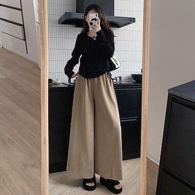秋冬のワイドパンツ 韓国ファッション 裏起毛パンツ ゆったり ワイドパンツ スウェットパンツ ワイドパンツレディース秋冬 厚手 防寒 ハイウエスト パンツ クリスマス