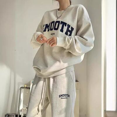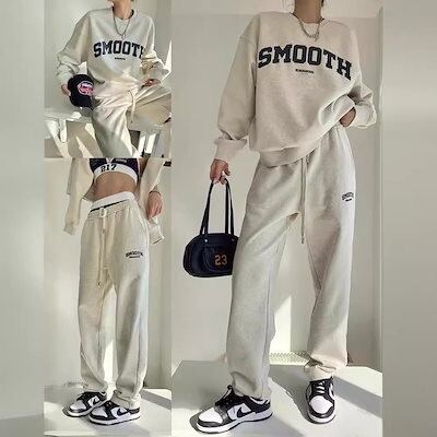 【 3日以内に出荷 】秋 冬 セットアップ 2点セット選べる2タイプ 厚手 裹起毛 長袖トレーナーロングパンツレディースかわいい きれいめ サイズ 大人可愛いゆったりファッション系コーデ衣装丈上下シル | DOKO-ME