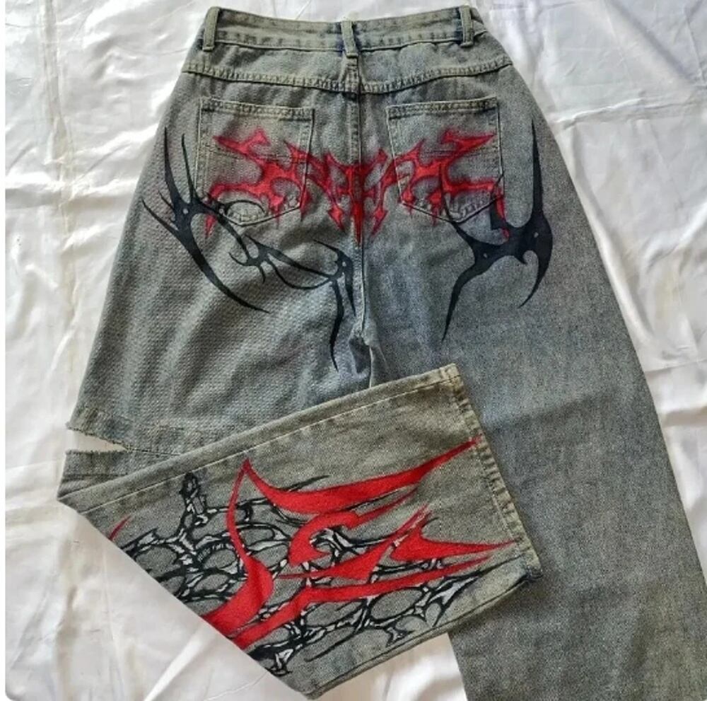 女性のカジュアルなストレートとワイドレッグパンツ,大きなストリート,y2kのヒップホップパターン,ヨーロッパとアメリカ y2k ボトムス T240901112207_01