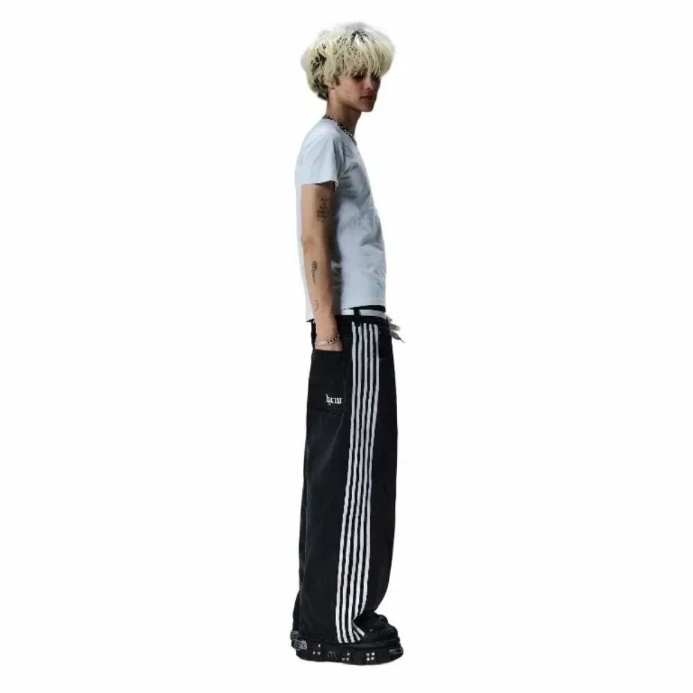 レディース原宿ストライプジーンズ,韓国ファッション,カジュアル,ストレートパンツ,クラシック,シンプル,ルーズフィット,y2k y2k ボトムス T240901115104_03