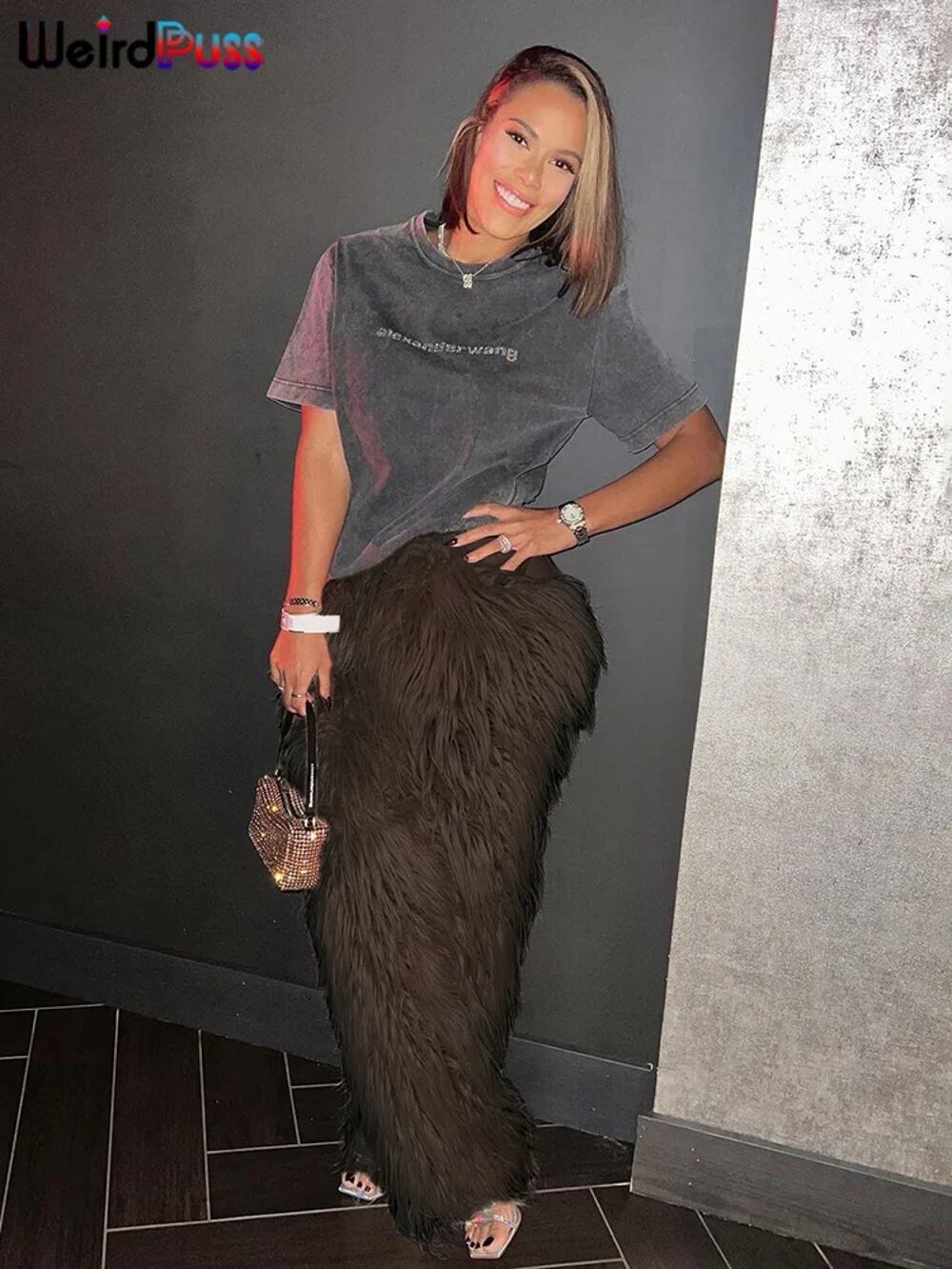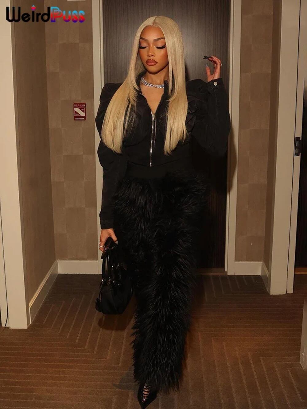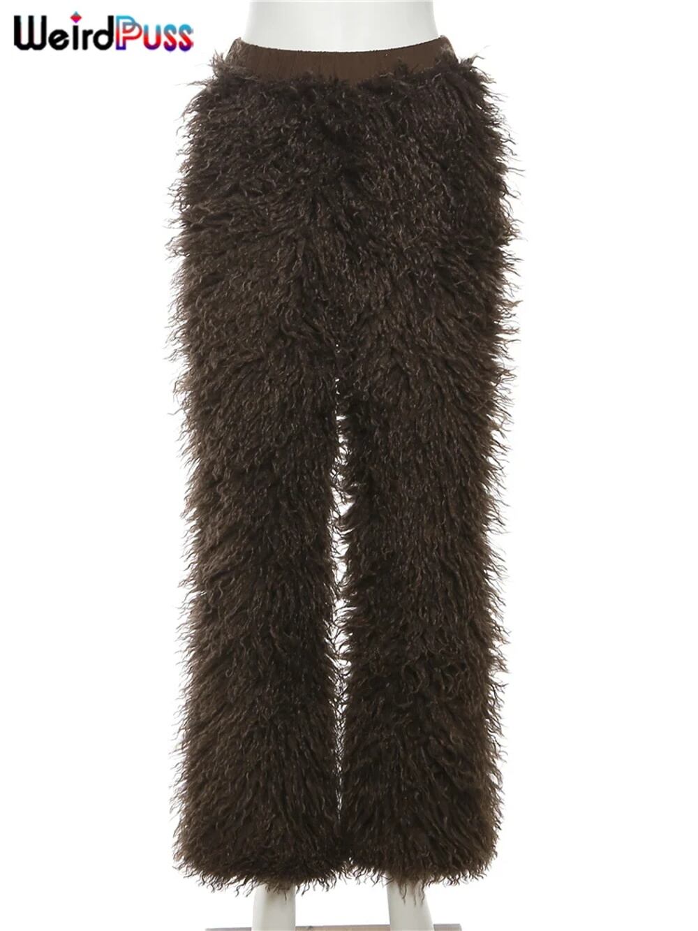 奇妙なジュラス-女性のための毛皮のようなストレートパンツ、暖かいカジュアルファッション、ワイルドストリートウェア、シンプルなソリッドボトム、ベーシックロングパンツ、秋冬 y2k ボトムス T240901120952_01 | DOKO-ME