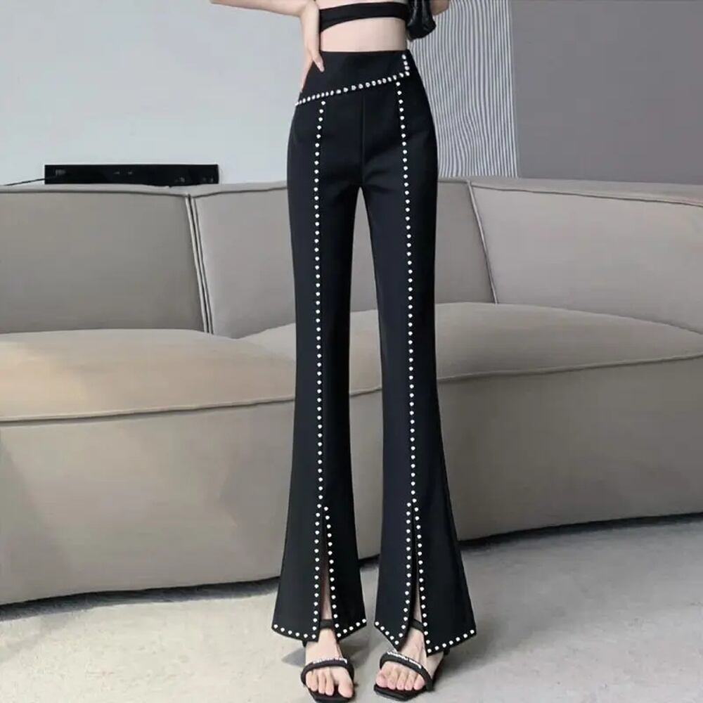女性用ブラックフレアパンツ,ハイウエストストリートウェア,カジュアル,スプリット,オールマッチy2kダイヤモンド,韓国ファッション,春秋,新品 y2k ボトムス T240901121350_01 | DOKO-ME